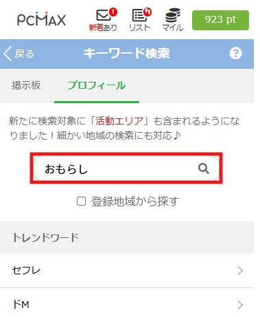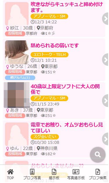 ただし、キーワード検索機能がないため、変態プレイなどのマニアックな出会いが難しい傾向にあります。