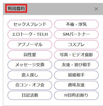 利用目的セフレ・SM・恋愛・不倫・友達・再婚